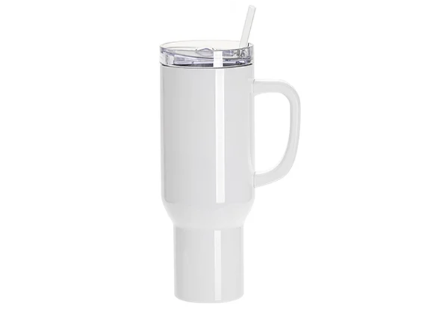 Sublimation Blanks 40oz/1200ml Stainless Steel White Travel Tumbler with Lid & Straw(White Handle)